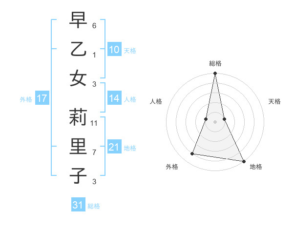 早乙女 莉里子さんを姓名の画数から五運を鑑定