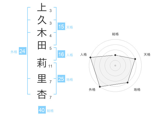 上久木田 莉里杏さんの外格は24画の5点!