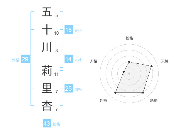 五十川 莉里杏さんを姓名の画数から五運を鑑定