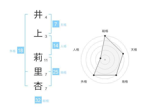 井上 莉里杏さんを姓名の画数から五運を鑑定