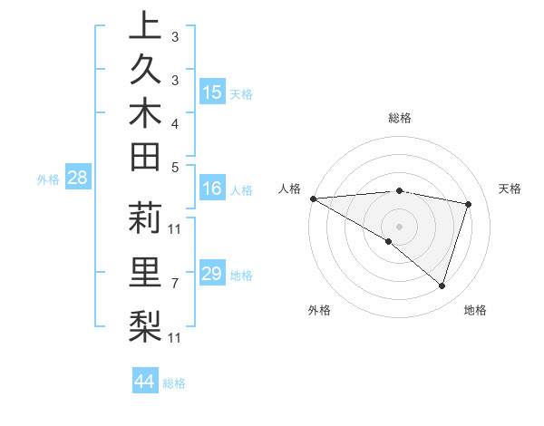 上久木田 莉里梨さんを姓名の画数から五運を鑑定