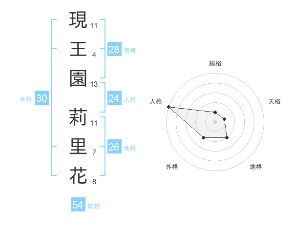 現王園 莉里花さんを姓名の画数から五運を鑑定