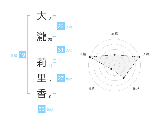 大瀧 莉里香さんを姓名の画数から五運を鑑定