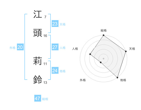 江頭 莉鈴さんを姓名の画数から五運を鑑定