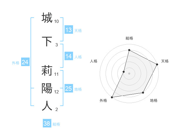 城下 莉陽人さんの総格は38画の4点!