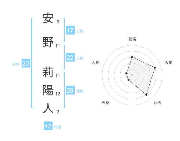 安野 莉陽人さんを姓名の画数から五運を鑑定