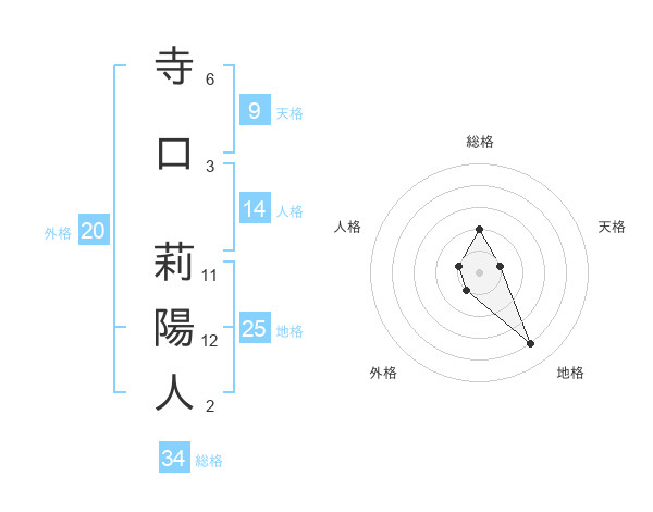 寺口 莉陽人さんの地格は25画の4点!