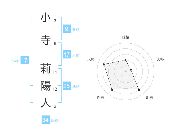 小寺 莉陽人さんを姓名の画数から五運を鑑定