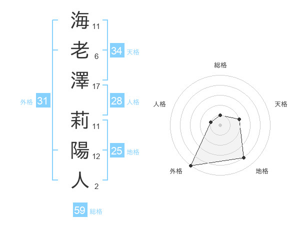 海老澤 莉陽人さんを姓名の画数から五運を鑑定