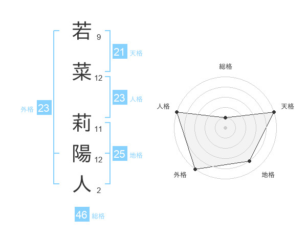 若菜 莉陽人さんを姓名の画数から五運を鑑定