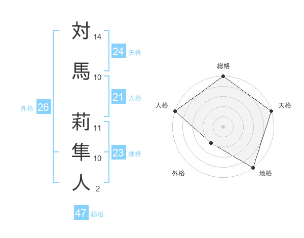 対馬 莉隼人さんの総格は47画の5点!