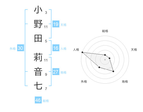 小野田 莉音七さんを姓名の画数から五運を鑑定