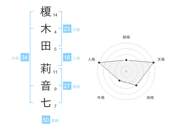 榎木田 莉音七さんを姓名の画数から五運を鑑定