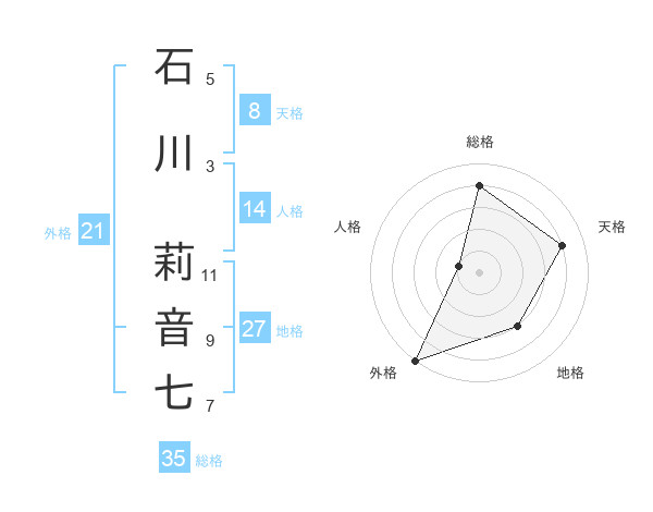 石川 莉音七さんを姓名の画数から五運を鑑定
