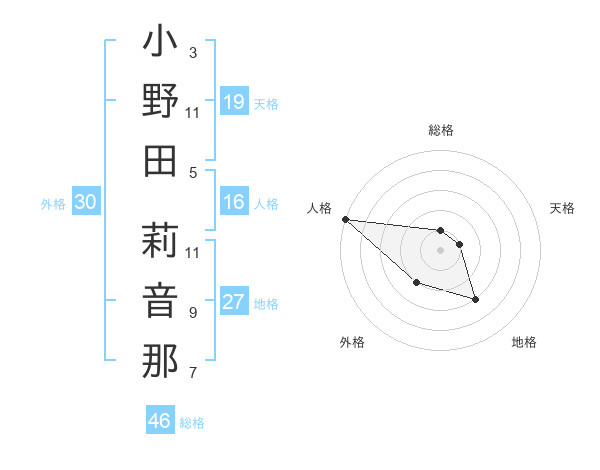 小野田 莉音那さんの外格は30画の2点!