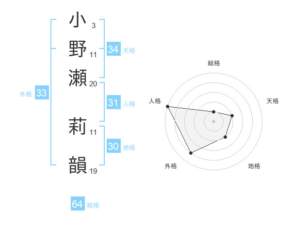小野瀬 莉韻さんの総格は64画の1点!