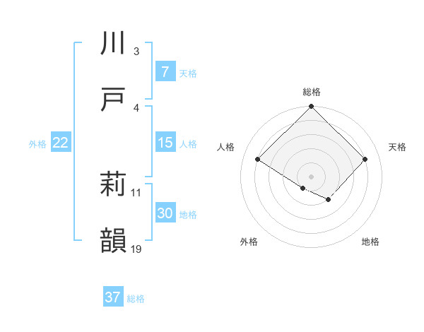 川戸 莉韻さんの総格は37画の5点!