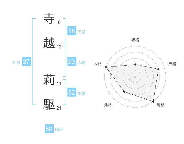 寺越 莉駆さんの総格は50画の2点!