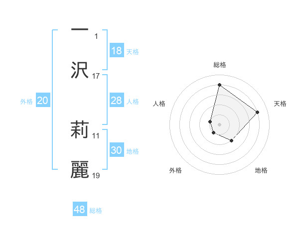 一沢 莉麗さんを姓名の画数から五運を鑑定