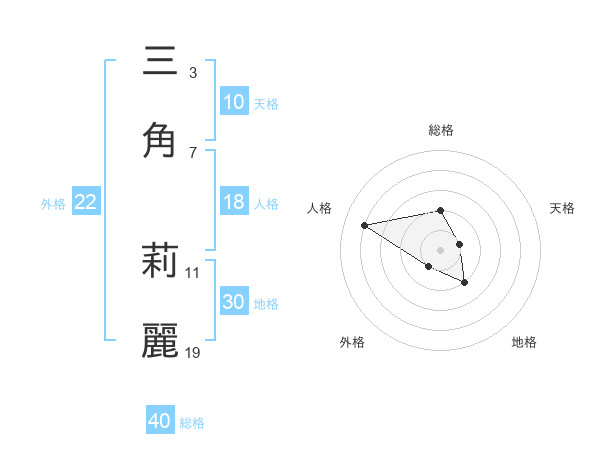 三角 莉麗さんを姓名の画数から五運を鑑定