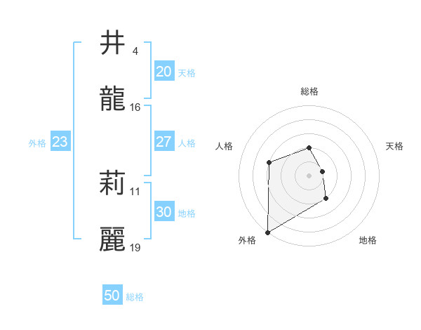 井龍 莉麗さんの外格は23画の5点!