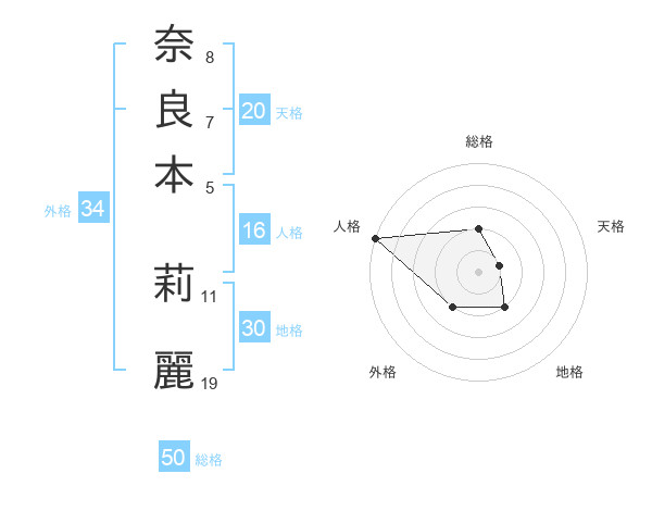 奈良本 莉麗さんを姓名の画数から五運を鑑定