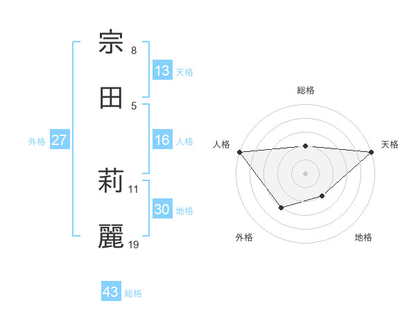 宗田 莉麗さんの天格は13画の5点!