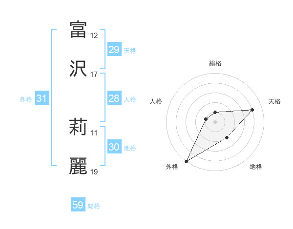 富沢 莉麗さんを姓名の画数から五運を鑑定
