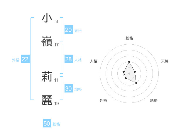 小嶺 莉麗さんの天格は20画の1点!