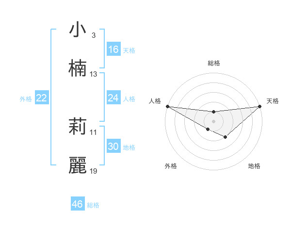 小楠 莉麗さんを姓名の画数から五運を鑑定