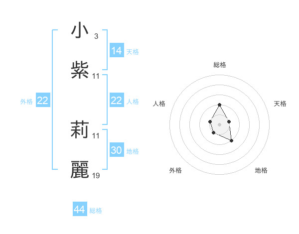 小紫 莉麗さんの外格は22画の1点!