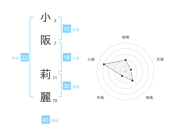 小阪 莉麗さんの総格は40画の2点!