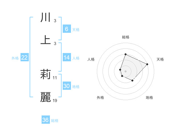 川上 莉麗さんを姓名の画数から五運を鑑定
