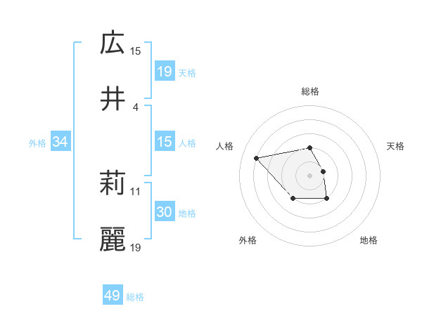 広井 莉麗さんの総格は49画の2点!