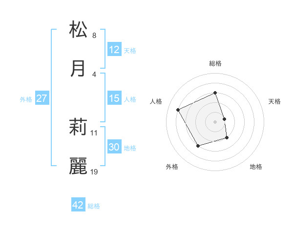 松月 莉麗さんを姓名の画数から五運を鑑定
