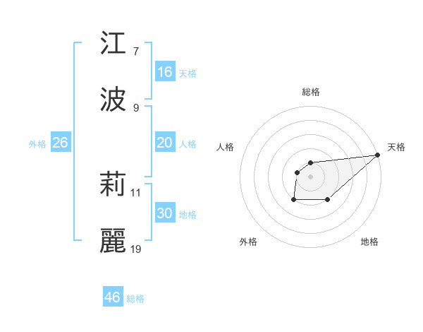 江波 莉麗さんを姓名の画数から五運を鑑定