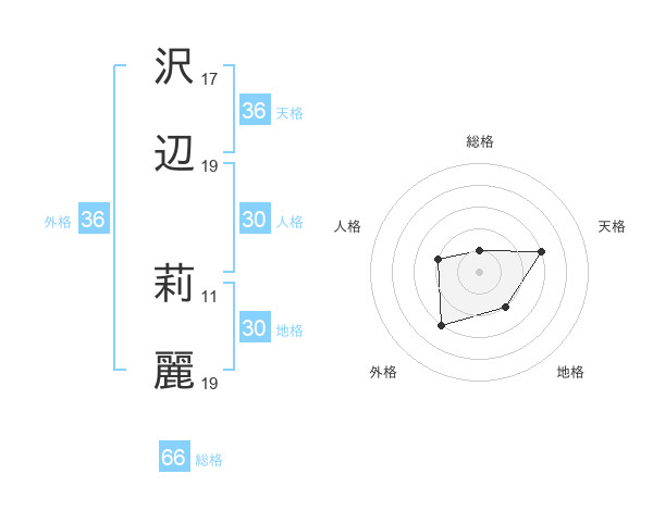 沢辺 莉麗さんの天格は36画の3点!