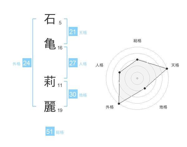 石亀 莉麗さんの総格は51画の3点!