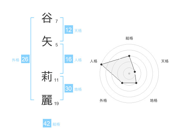 谷矢 莉麗さんの総格は42画の3点!