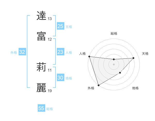 達富 莉麗さんの総格は55画の1点!