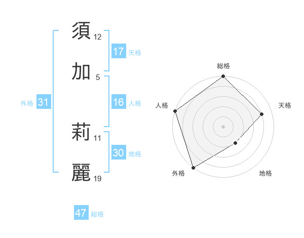 須加 莉麗さんを姓名の画数から五運を鑑定