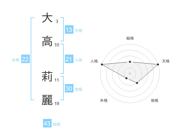 大高 莉麗さんの天格は13画の5点!