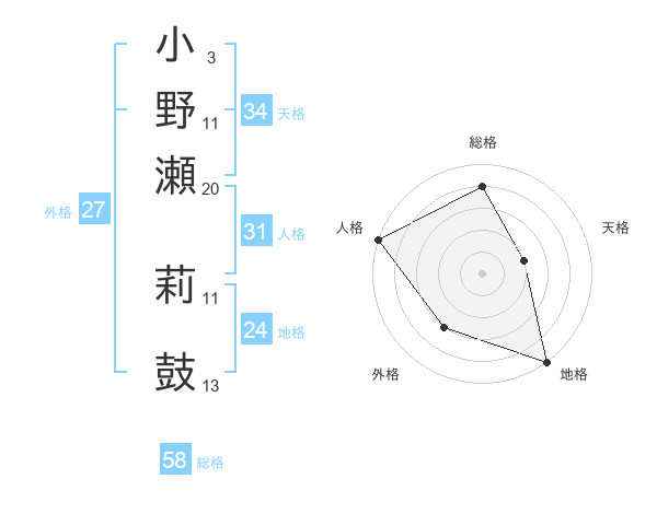 小野瀬 莉鼓さんを姓名の画数から五運を鑑定