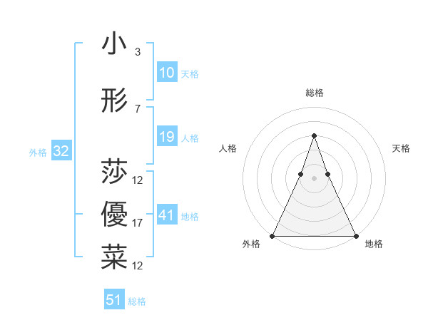 小形 莎優菜さんの総格は51画の3点!