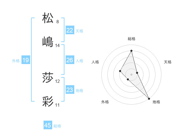 松嶋 莎彩さんの総格は45画の4点!