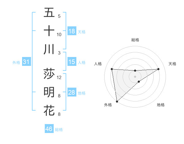 五十川 莎明花さんを姓名の画数から五運を鑑定
