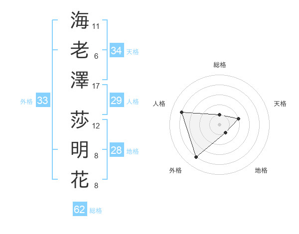 海老澤 莎明花さんを姓名の画数から五運を鑑定
