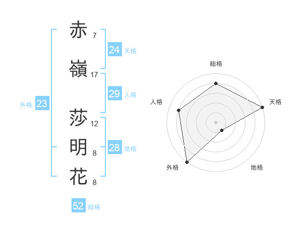 赤嶺 莎明花さんを姓名の画数から五運を鑑定