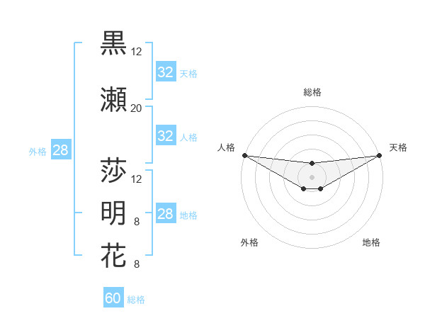 黒瀬 莎明花さんを姓名の画数から五運を鑑定