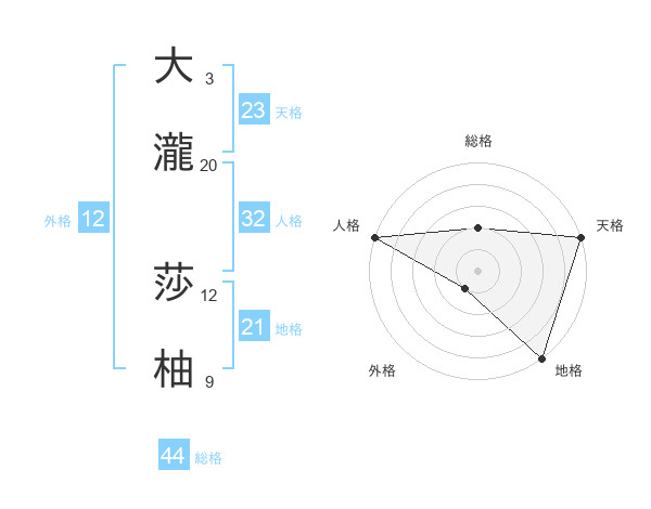 大瀧 莎柚さんを姓名の画数から五運を鑑定